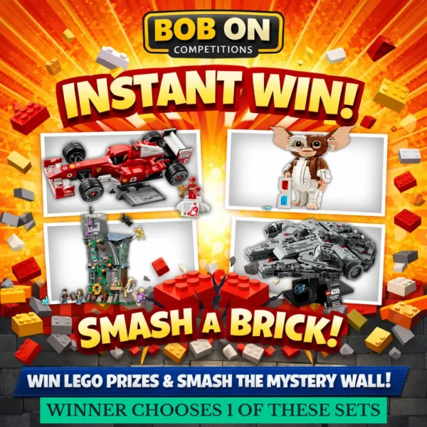 Not only are there LEGO instant win prizes, but players will also help smash down a brick wall hiding a mystery LEGO prize behind it.