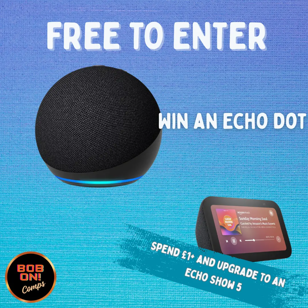 Bob On Comps is giving you the chance to win an Amazon Echo Dot – FREE to enter! No purchase is necessary, anyone can grab a free ticket and be in the draw.
